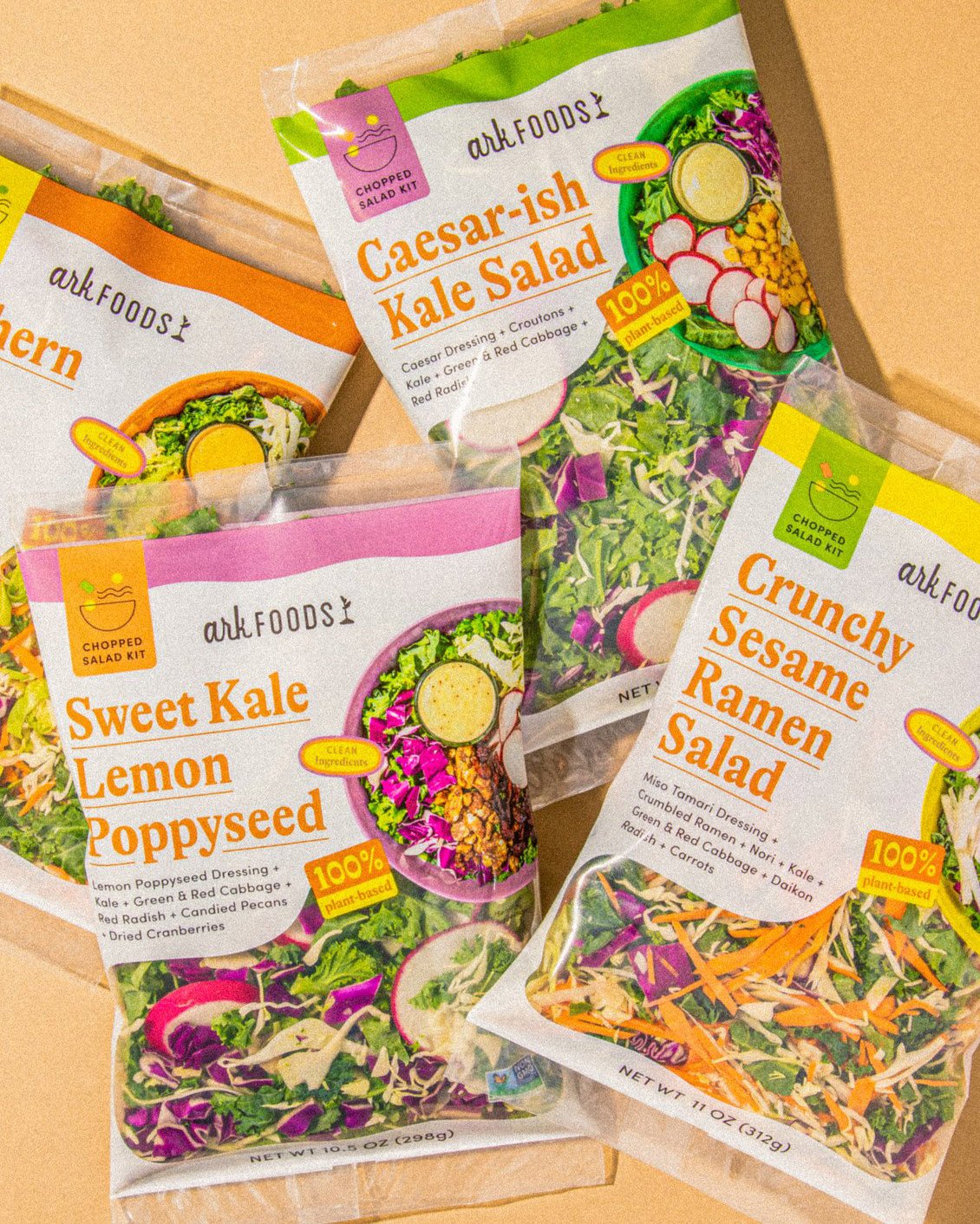 We helped build brand recognition as Ark Foods expanded, focusing on a cohesive visual identity across product lines—including salad kits and Costco packaging—with playful design elements.